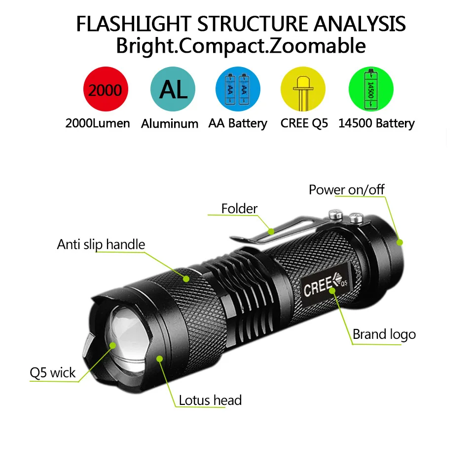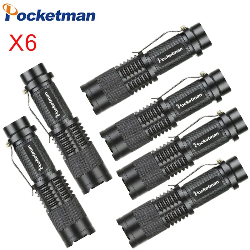 HOT Sale 6 Pack Powerful Waterproof Mini Flashlight Q5 LED Torch Lanterns 2000lm Adjustable Focus Zoomable L